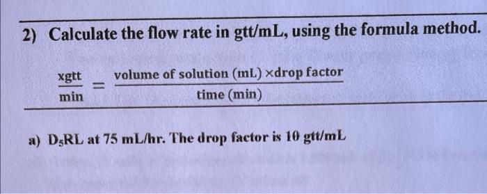 Solved 2 Calculate The Flow Rate In Gtt Ml Using The Chegg Com